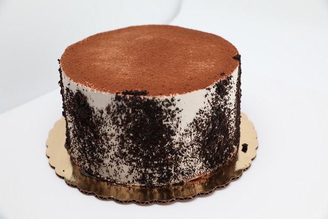 A decadent choclate cake soaked in espresso filled with layers of our capuccino filling. Topped with cocoa and chocolate cookie crumbs.