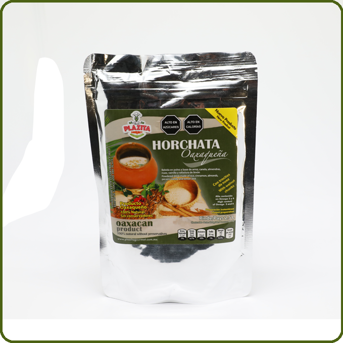 Bebida en polvo a base de arroz, y canela. Con trocitos de nuez. Instantáneo. Producto Oaxaqueño.